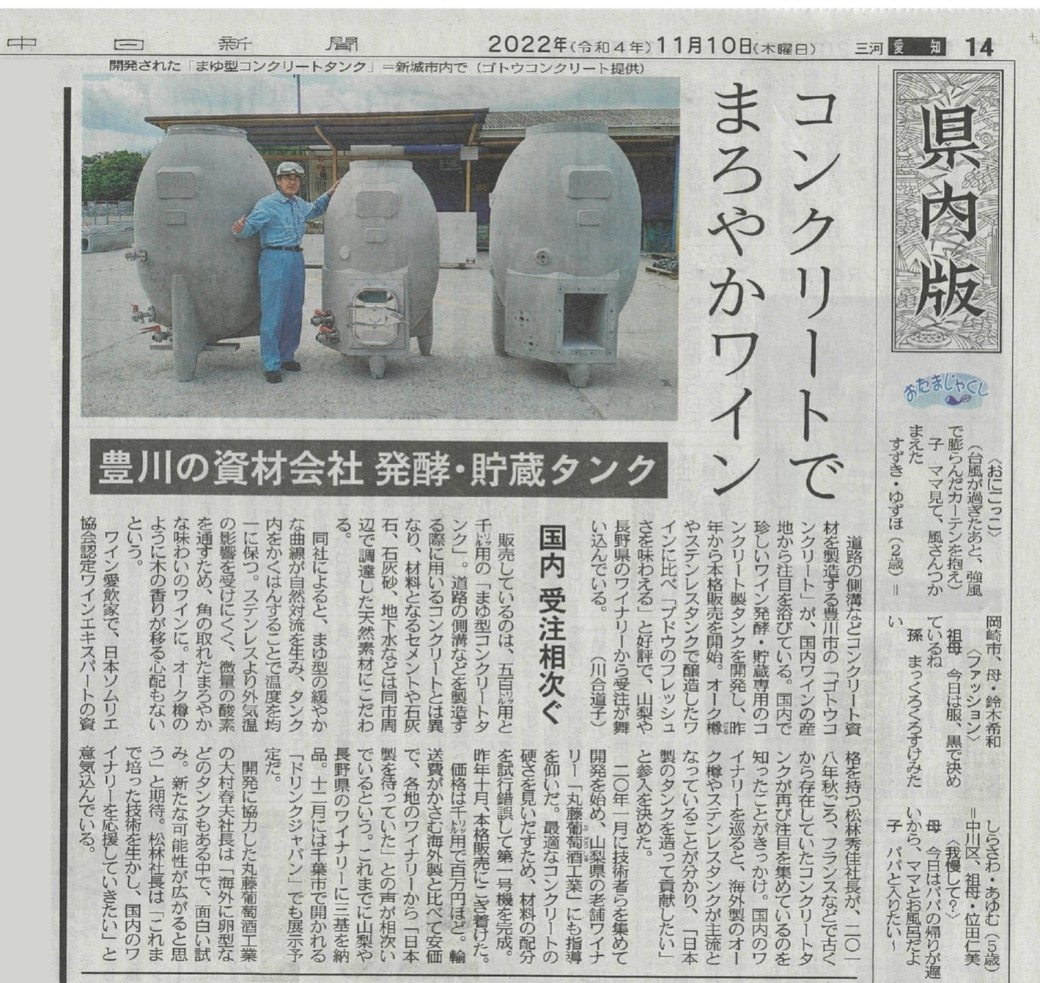 2022年11月10日発行の中日新聞(朝刊/愛知県内版)にてまゆ型コンクリートタンクについての取材記事が掲載されました。