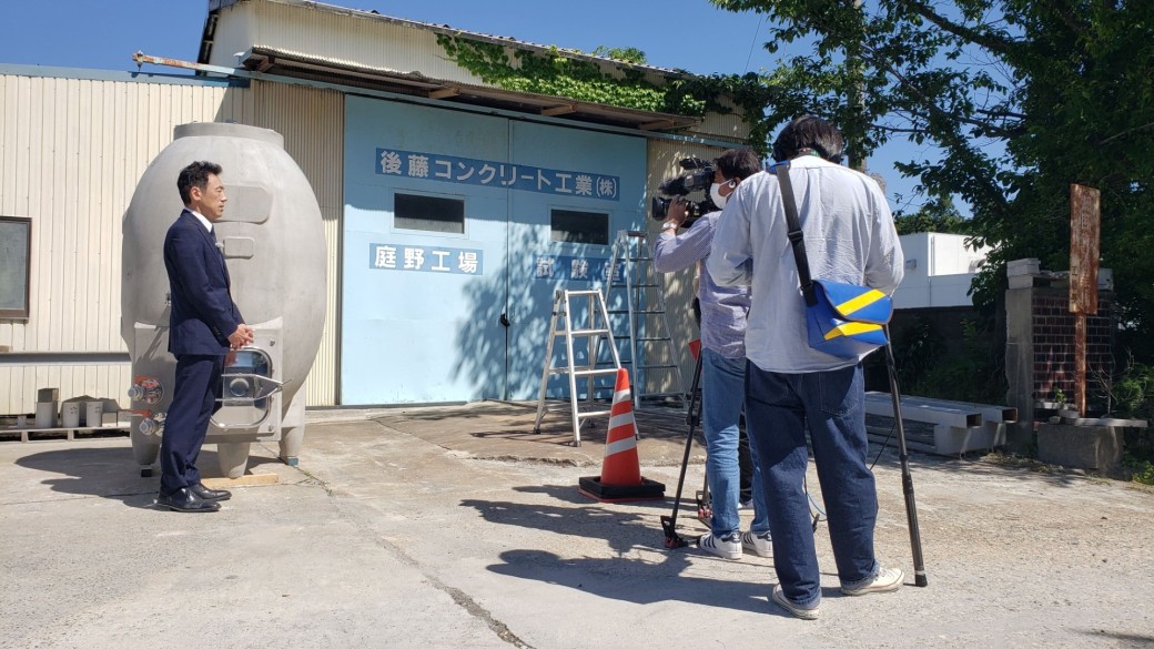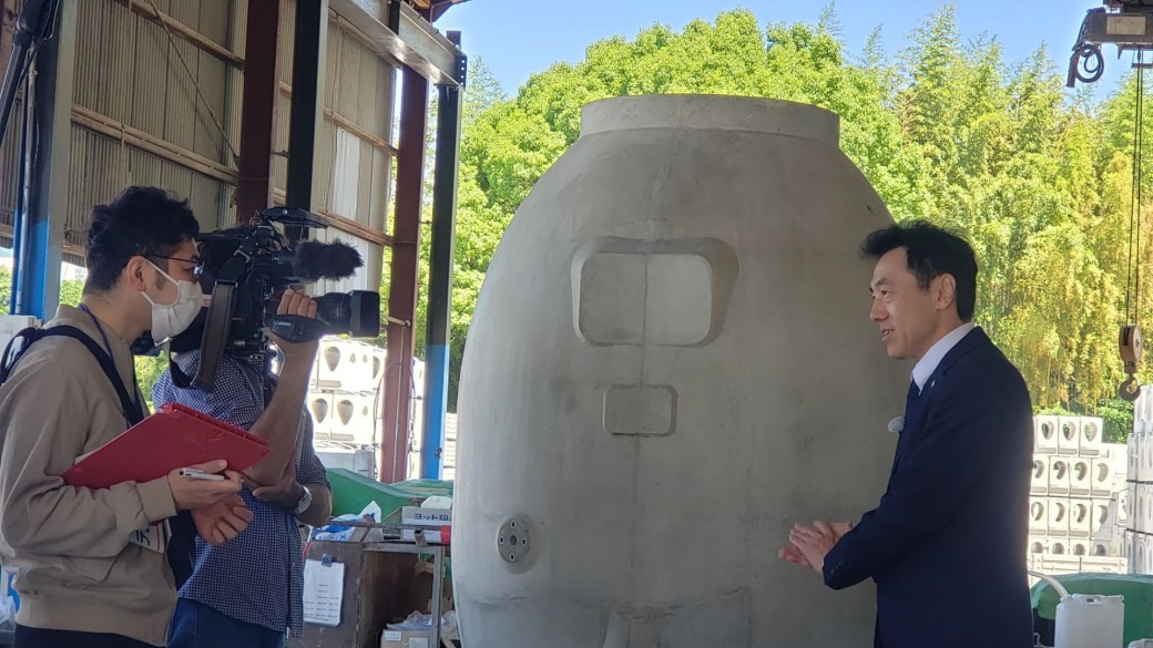テレビ愛知様の「5時スタ」にて弊社のまゆ型コンクリートタンクの取材映像が放送されました。