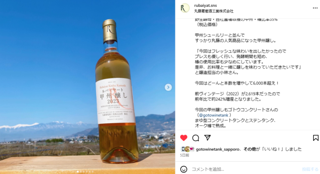 丸藤葡萄酒工業㈱様 Instagramより引用