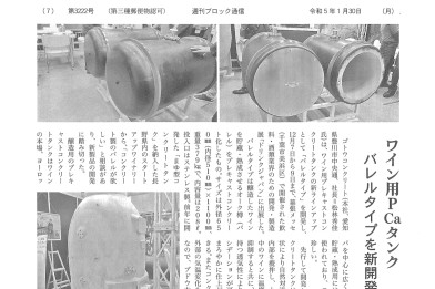 週刊ブロック通信にまゆ型コンクリートタンクの記事が掲載されました。