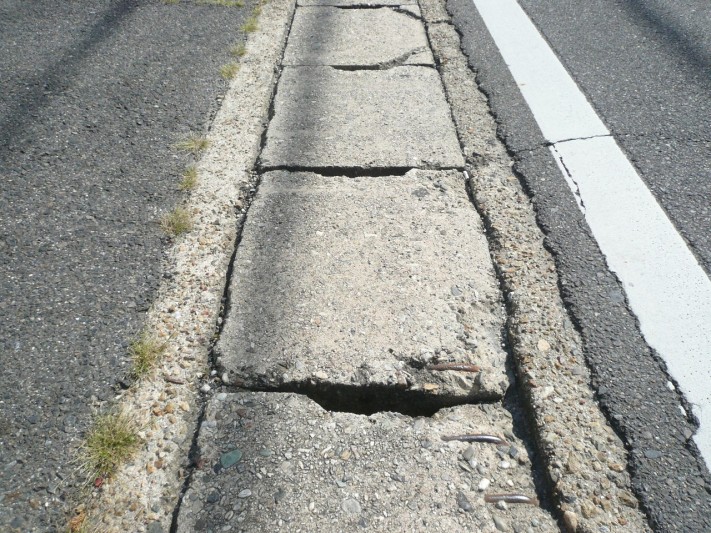 例えば、元々入っていた側溝蓋と同じ側溝蓋を使用する。まずはじめにこの選択肢が挙がると思います。ですが、注意点がございます。側溝蓋が破損するという事は、日頃それだけの負荷が側溝に加わっているということ。その為、同じ側溝蓋を入れても、同じ様に破損してしまう可能性が高いです。また、側溝蓋が破損している場合、側溝蓋が掛かっている「側溝本体」にも負荷による劣化が起こっている可能性が高く、根本的な改善をしない限り、いつかは側溝本体も入替える必要が出てきます。